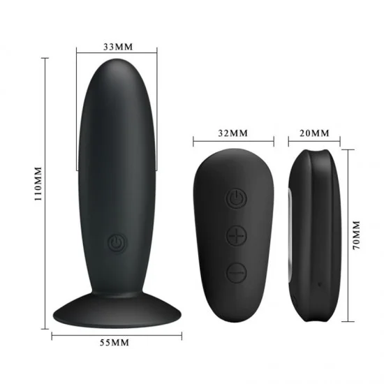 VIBRADOR ANAL RECARGABLE CONTROL REMOTO SILICONA 11CM 3.3 CM